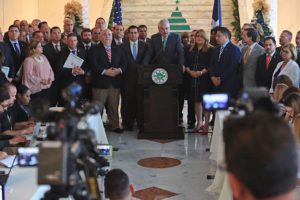 “Todos reconocemos que la Reforma Contributiva federal es mala para Puerto Rico y que nuestra condición colonial ha puesto a la Isla en una desventaja al punto de que quieren imponernos contribuciones que afectan severamente nuestra iniciativa económica”, aseveró Rivera Schatz, al concluir el cónclave celebrado en el Capitolio con la asistencia de González Colón, el gobernador Rosselló Nevarez y los alcaldes.