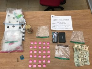 Se ocupó como evidencia 29 bolsitas de cocaína; 1 bolsita de marihuana; 1 cigarrillo de marihuana; $110 en efectivo; 1 pesa y parafernalia.