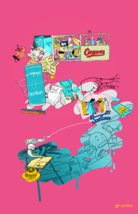 Mamposteao ha sido la mente detrás del desarrollo de la identidad gráfica para proyectos de marcas como el café de El Mesón Sandwiches, SANGRÍA Sabrina, Leonardo’s, Marey, Gerber, Quesos Vaca Negra y Foundation for Puerto Rico, entre otros.