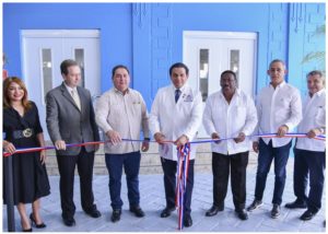 El ministro Daniel Rivera (centro) durante el corte de cinta en la reinauguración del Centro Sanitario. Inter News Service