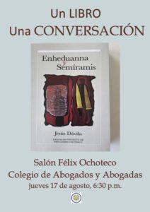 La conversación abierta al público, que podrá participar ampliamente, girará en torno al nuevo libro de periodismo histórico “Enheduanna y Semíramis”, de Jesús Dávila.