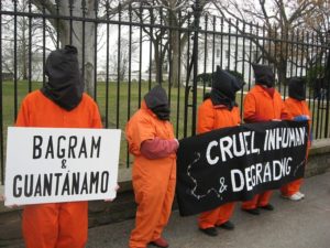 La Comisión Interamericana de Derechos Humanos (CIDH) señaló que el Gobierno de Estados Unidos autorizó el uso de «técnicas de interrogatorio reforzadas», las cuales incluían confinamiento estrecho, la técnica de pared, posiciones de estrés, privación del sueño, «submarino», privación sensorial, golpizas brutales, descargas eléctricas, hipotermia inducida, submarino seco, entre otros tipos de tortura.